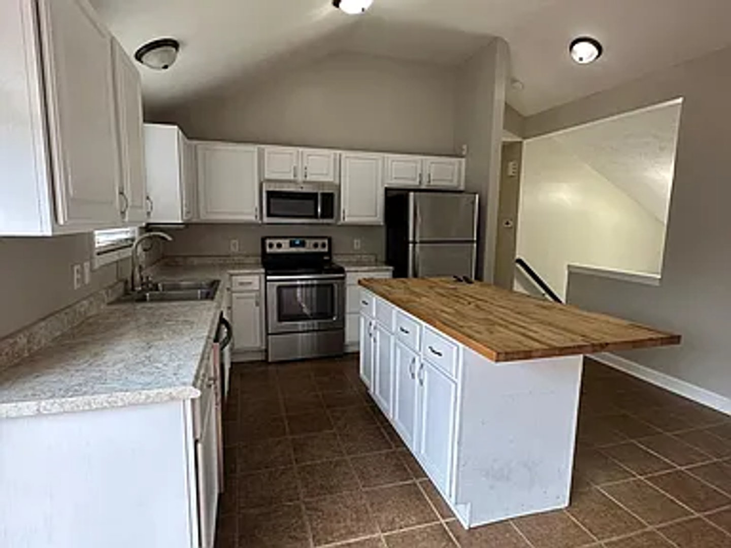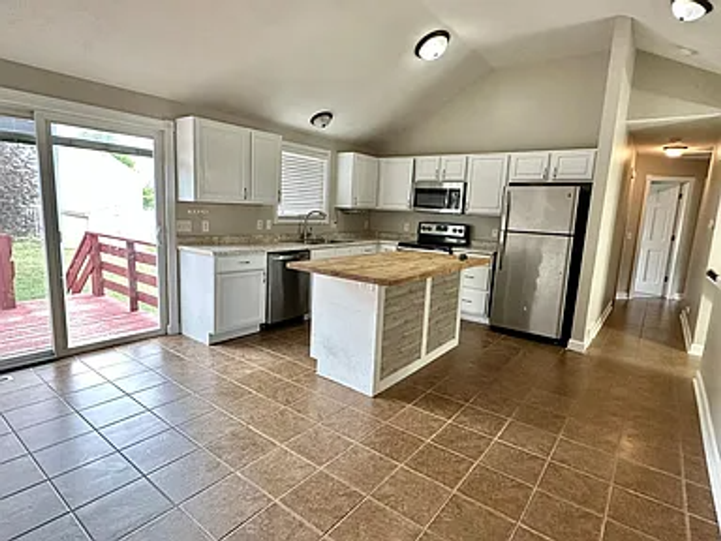 Step into this charming split-level home featuring vaulted ceilings and a spacious living room with large windows that fill the space with natural light. The eat-in kitchen boasts a butcher block island and opens onto a deck that leads to a generously sized, privacy-fenced backyard perfect for entertaining or relaxing.