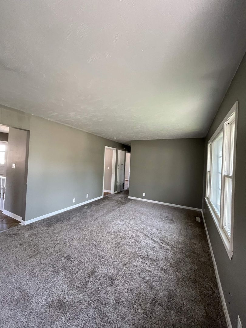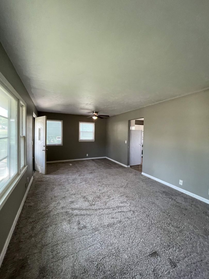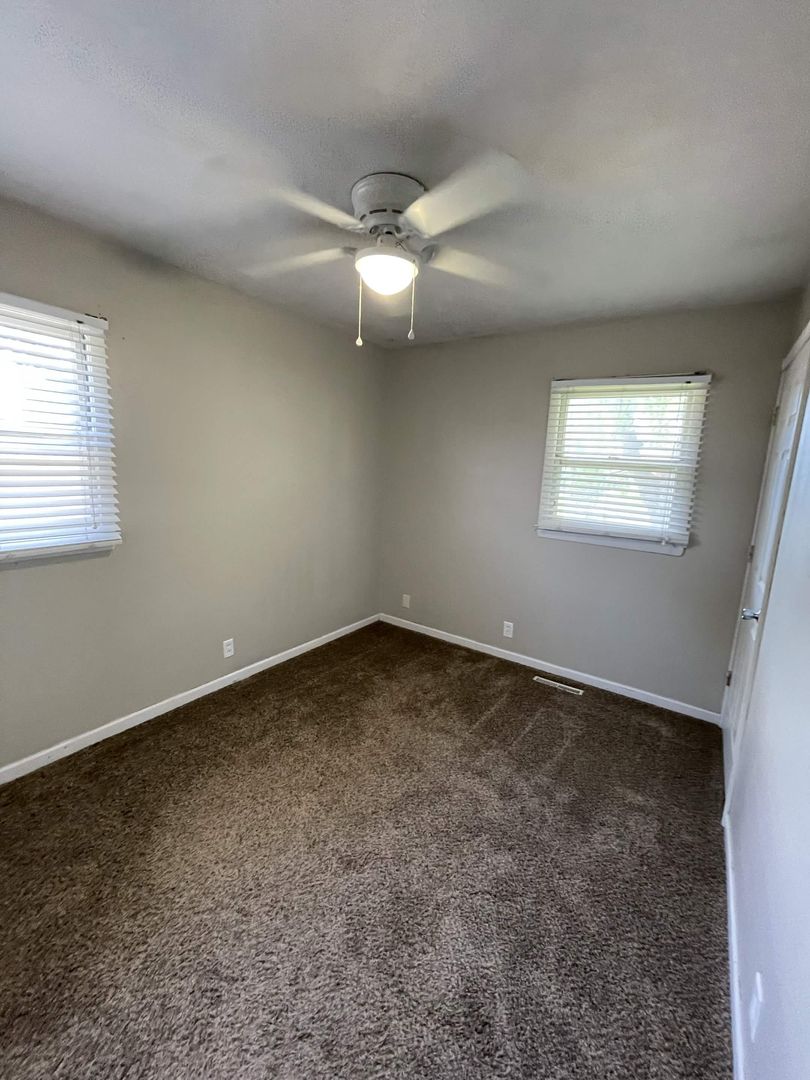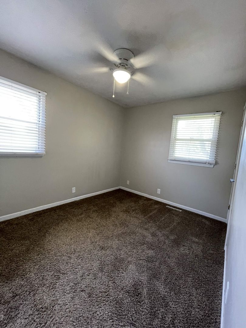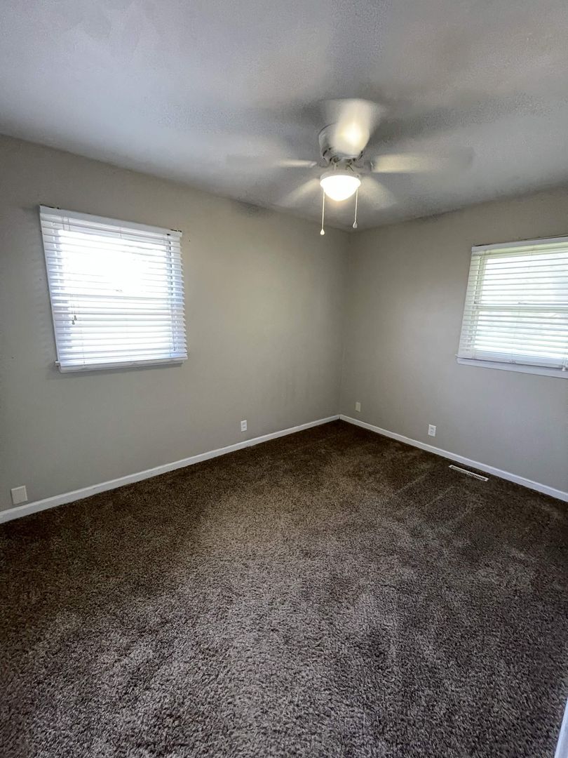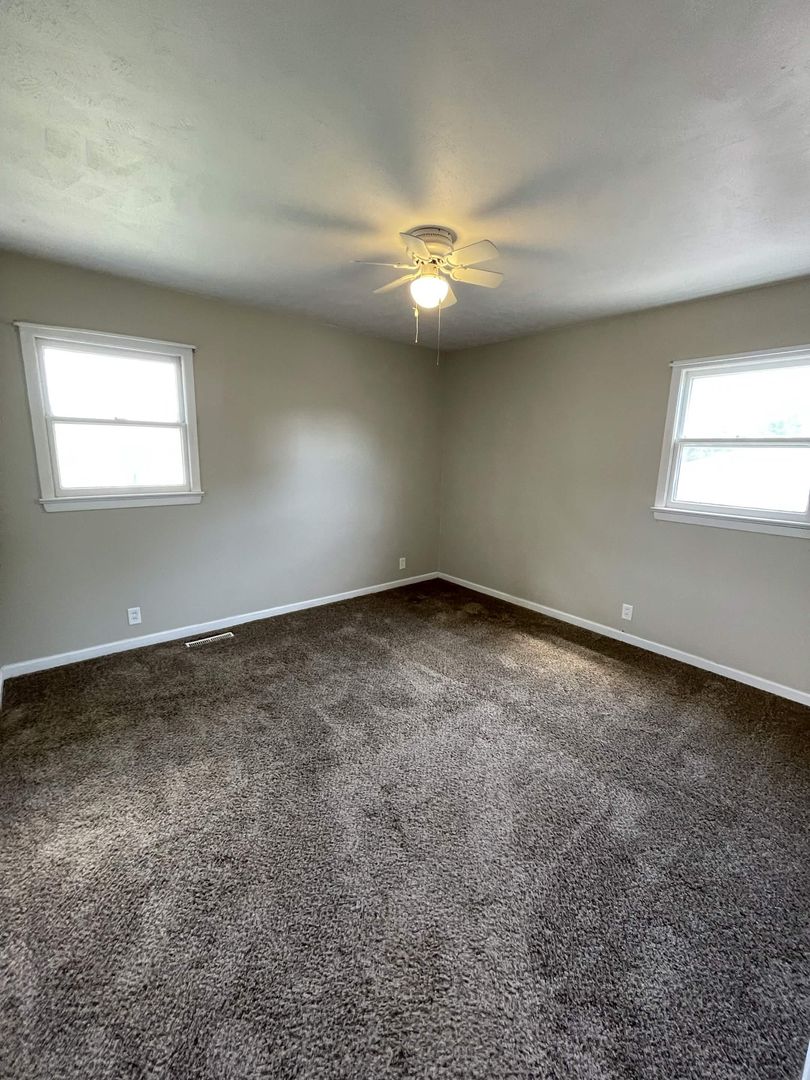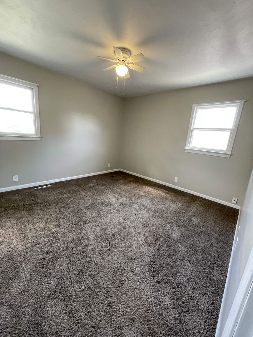 Updated dark carpet in main floor bedrooms with ceiling fans